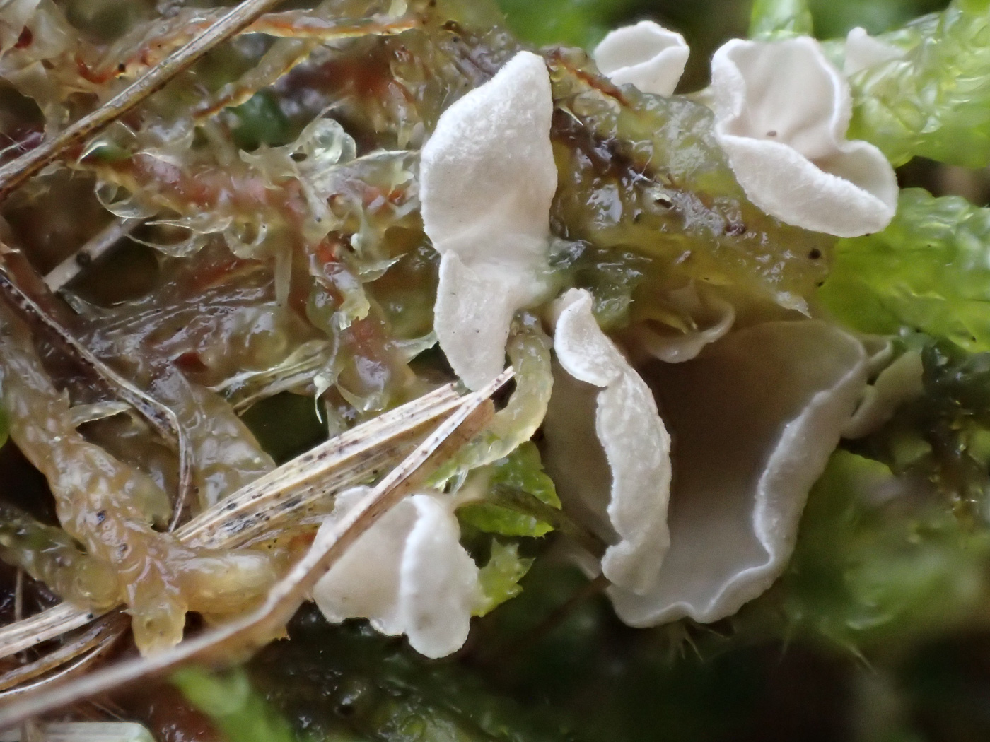 Nov 26, 2022. At Little Brickhill Churchyard Stephen Plummer noticed this tiny umbilicate species just visible in a patch of thick moss (photo1). This is a rare species (we have just one previous county record) though is easily missed for obvious reasons. It is saprophytic on moss, one of several such species associated with moss, lichen and liverworts, often needing care to identify taking note of the specific host species.