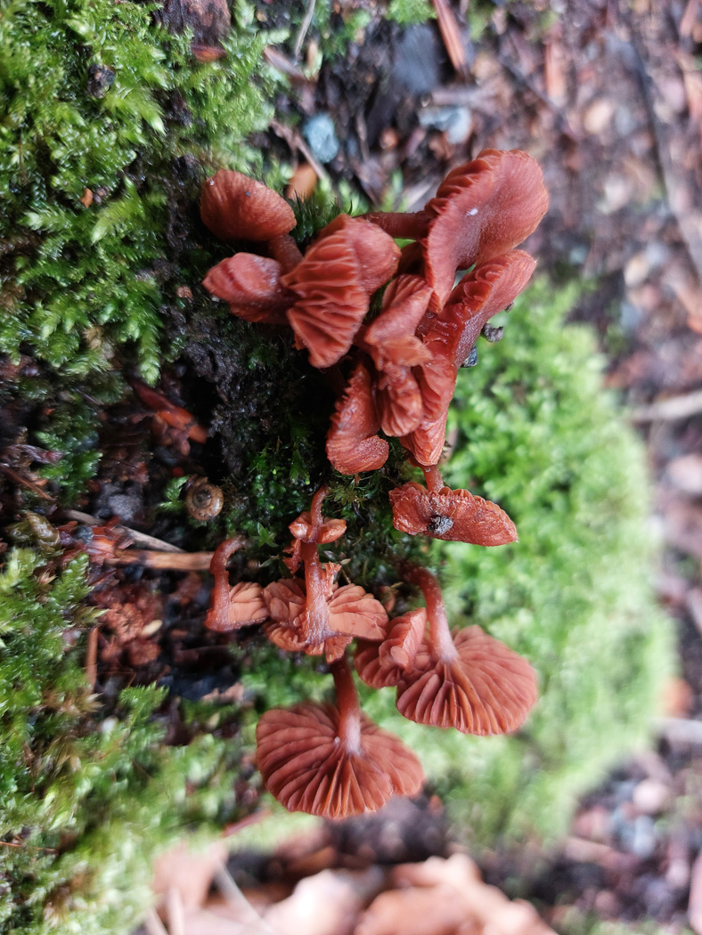 Jan 3, 2024. On a moss covered broadleaf stump in Salden Wood Bob Simpson found this typically winter species. It favours deciduous wood, often tightly clustered on living trunks and flourishes in both frosty and snowy conditions. Caps are brightly coloured but the give-away feature is the dark lower stem which is finely furry. One to look out for at this time of year. |