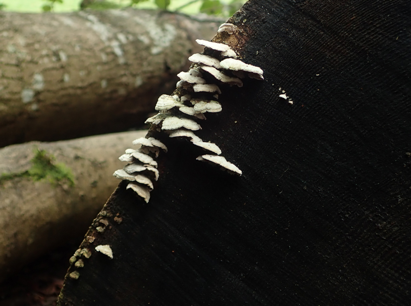 Sep 13, 2022. Continuing Penny's soft fleshed bracket theme above, here for comparison (and also from Burnham Beeches) is a rather dark example of Turkeytails showing the typical zoning above - though this can also be a feature in Smokey Bracket and also the species following this one! Other examples in Finds show the creamy white pored undersurface far better than Penny's poor photo 2 here. |