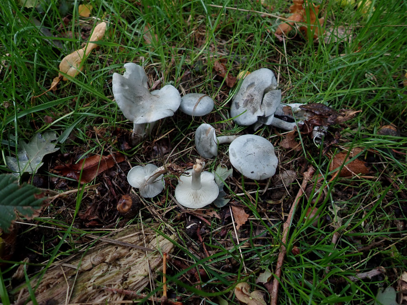 September 17th Clitocybe odora (Aniseed Funnel) At Turville Heath Penny found a group of these just freshly emerging in a grassy area. Their distinctive blue-green caps were pale compared to sometimes when they can be really strikingly intense; they can also be much more faded to almost white. But put one to your nose and there can be no mistaking the delicious sweet aniseed smell! Previous finds |