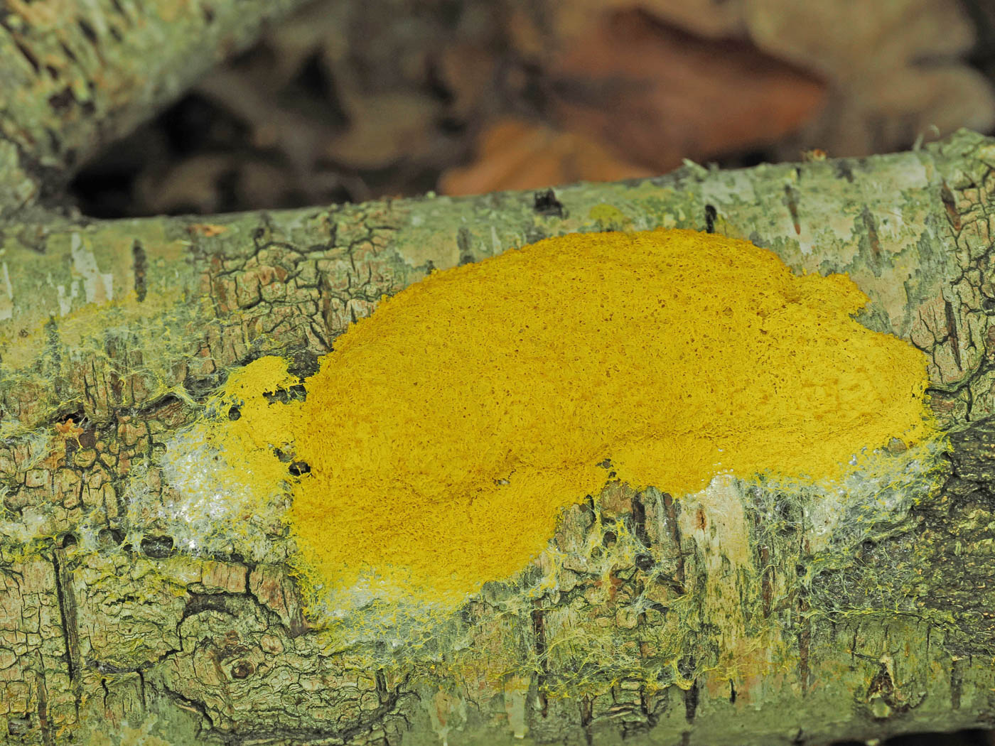 September 9th Fuligo septica var. flava (Dog's Vomit) In Burnham Beeches Claire Williams saw this bright yellow patch on a fallen branch, possibly Birch, and recognised it as one of our commonest slime moulds. Previous finds |