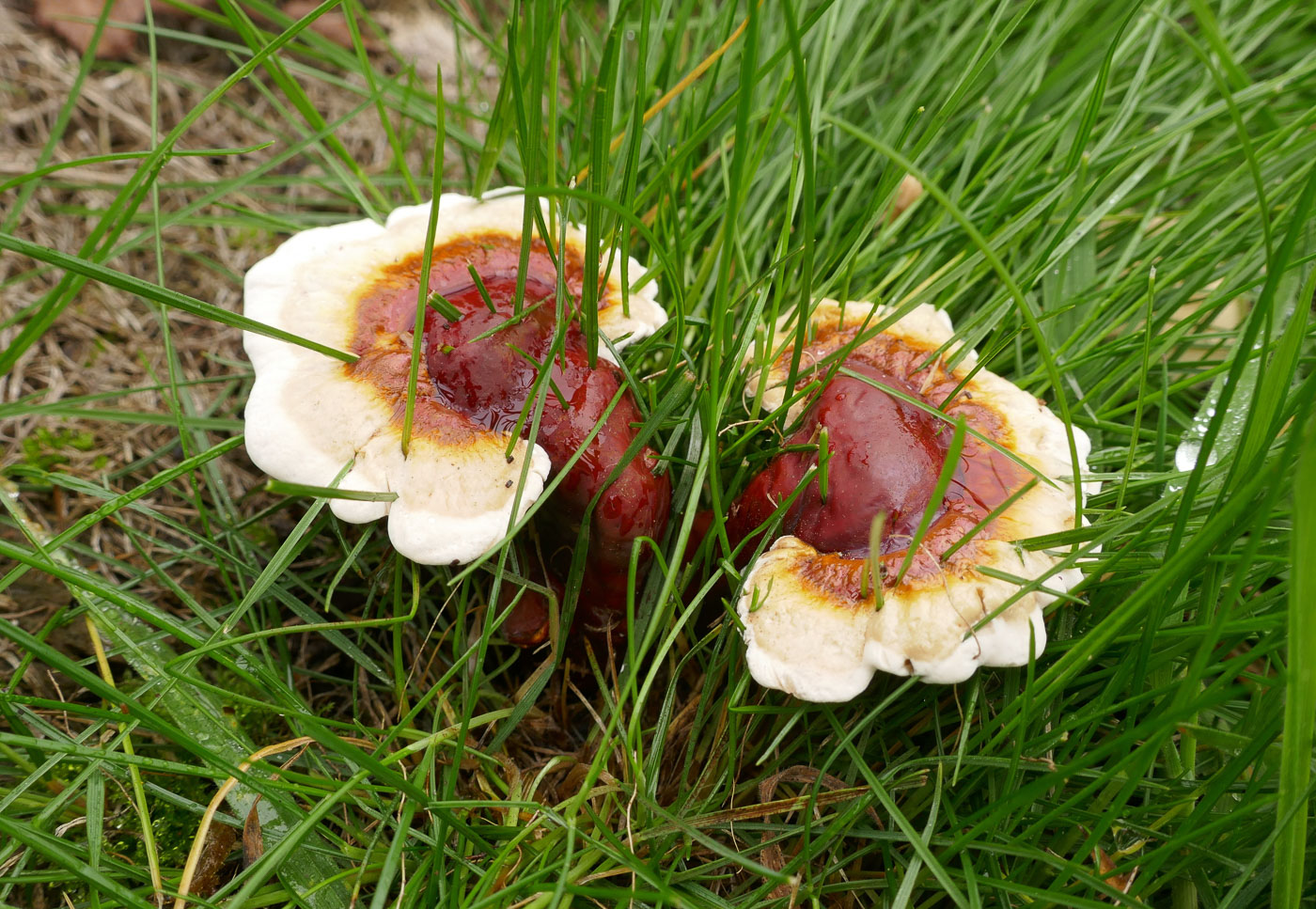 May 6th Ganoderma cf. resinaceum (a bracket with no English name) ![]() Near Gt. Missenden Sarah Ebdon found this smart pair of brackets at the foot of a Hornbeam, and recognising that from its reddish colour and also notable stem it was probably an interesting species of Ganoderma she collected one to check later. The reason for the 'cf' in the name here is that she found some conflicting characters which made it tricky to be confident whether this was G. resinaceum or the rarer G. lucidum (Lacquered Bracket). G. lucidum is known to be the species within this genus which has a distinct stem, therefore this collection fitted that particular to a T; however, Sarah found not only that the spores seemed a better fit for G. resinaceum but also the dark line she found within the context (see photo 4) when cut open together with the possible slight bubbling of the upper surface when put near a flame were not characteristic of G. lucidum. From its appearance both Penny and Derek are leaning towards G. lucidum, so a sample will be sent for sequencing which we hope will resolve the matter. Watch this space! Also now see the entry for Ganoderma cf lucidum dated August 13th where this story is continued ...................... Previous finds |