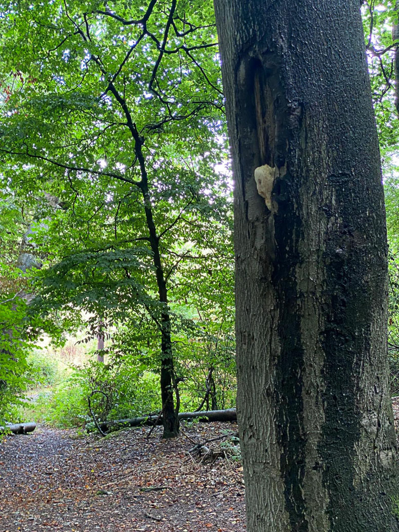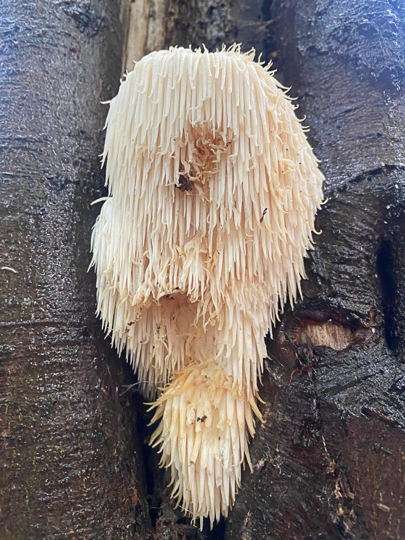 September 3rd Hericium erinaceus (Bearded Tooth / Lion's Mane) Penny received an email plus three photos from a member of the public who had found this very rare fungus on a Beech trunk in a woodland in the outskirts of Amersham. The species being so unique in appearance there seems little doubt about the ID and it is great news that a new site for it has now come to light (though the site details are withheld here for obvious reasons!). The photos were sent in by Julie Harrison and the finder was her son Joey. Then 10 days later Paul Goby sent in photo 4 from Naphill Common where this charismatic species is now beginning to fruit again. Previous finds |