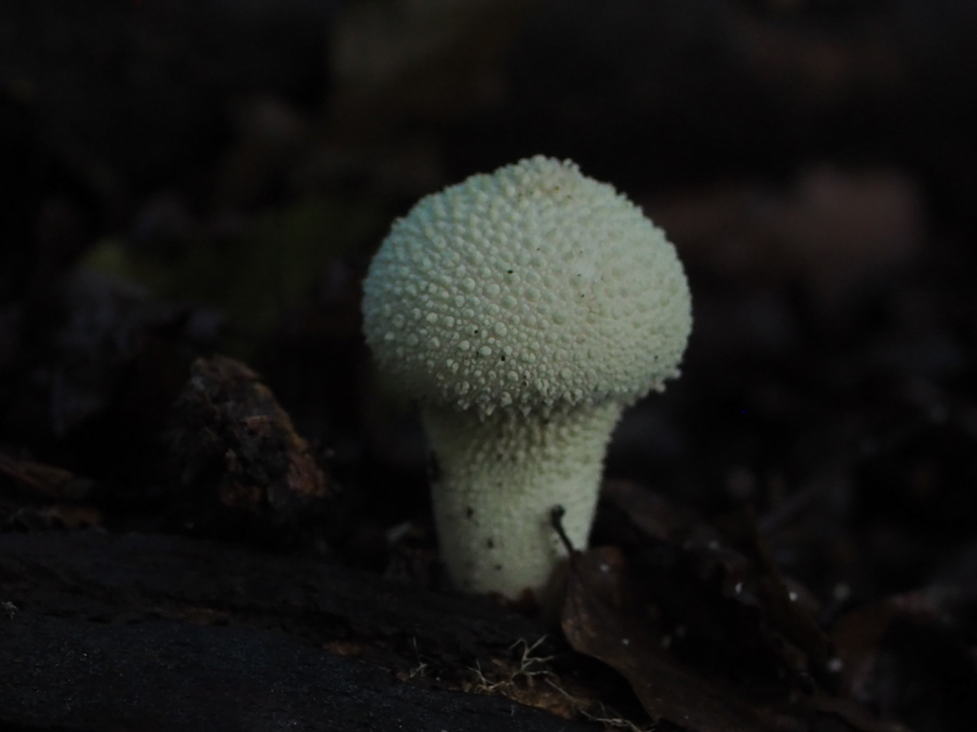 September 12th Lycoperdon perlatum (Common Puffball) In a dark corner of Tinkers Wood John Catterson spotted this smart singleton in pristine condition and showing its characteristic shape with the easily removable warts / granules coating the surface. Previous finds |