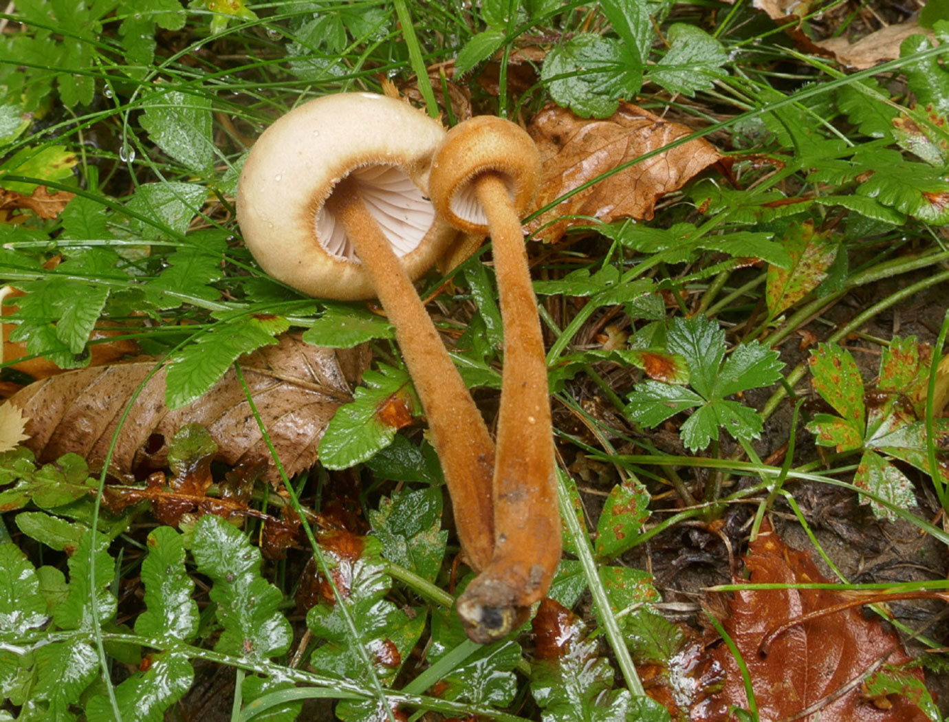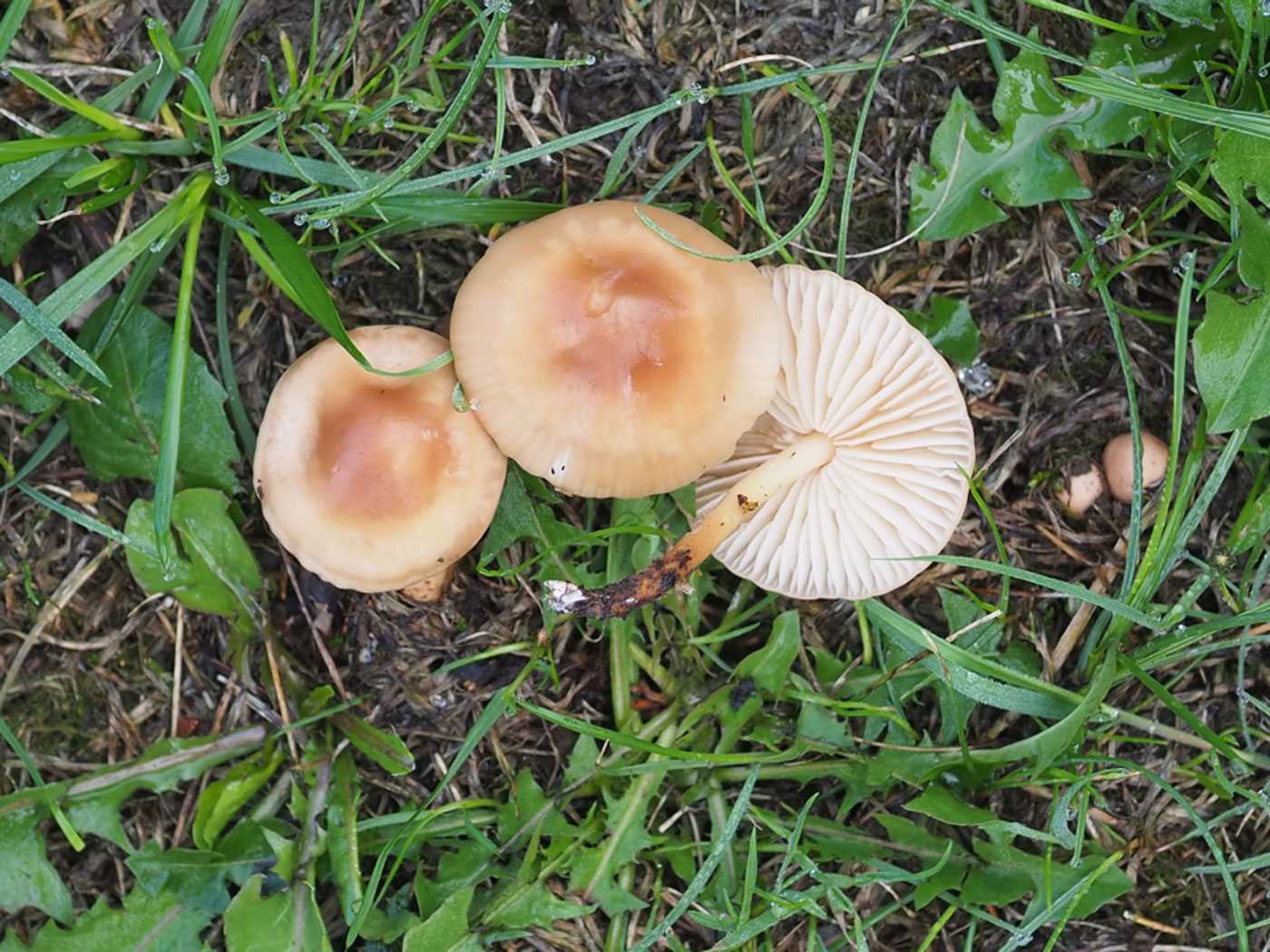September 13th Marasmius oreades (Fairy Ring Chanterelle) In a grassy area in High Wycombe John Catterson noticed a partial ring of this common early season fruiter. Though not a typical Marasmius in some respects being rather larger and more fleshy than many, note the stem which is pale at the top but darkens lower down – a character often seen in the genus. Previous finds |