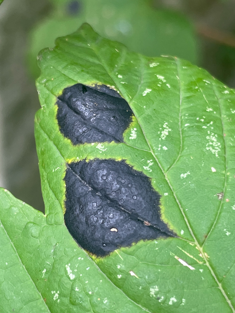 May 3rd Monilinia johnsonii (Haw Goblet) Whilst walking near Woodrow Sarah Ebdon smelt a familiar sickly sweet but unpleasant smell which rang a bell! This was from a small fungus which she'd come across last spring and which causes Leaf blight in Hawthorn at this time, the smell of which is thought to mimic that of Hawthorn blossom in order to attract insects. In autumn one can find the small stemmed cups of a further stage of this fungus on the fallen haws. Sarah recognised the smell instantly because though reportedly fragrant and possibly with a Germolene component(!) she actually finds it quite stomach churning! From her reaction to the smell she knew there must be Hawthorn close by, then discovered a bush in the hedge some 20 odd paces behind her, and sure enough there were just a few affected leaves! Previous finds |