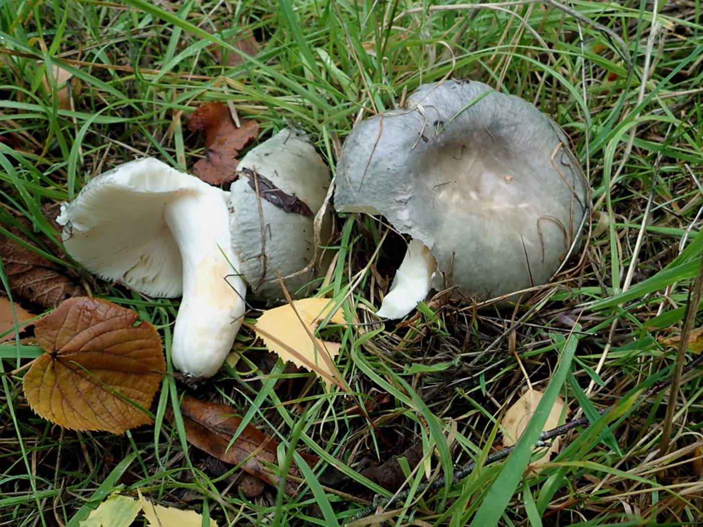 September 14th Russula amoenolens (Camembert Brittlegill) At Turville Heath under Birch Penny found this pair and noting the cap colour and clear 'fluting' around the margin she had a sniff to confirm the ID - definitely cheesy! At home she tested with a drop of the stain Guaiac which went instantly deep blue-green on the stem, this separating this commoner species from the more unusual lookalike R. sororia which fails to change colour even after a minute or so. Both are members of Section Ingratula affectionately known as 'the Smellies'. Previous finds |