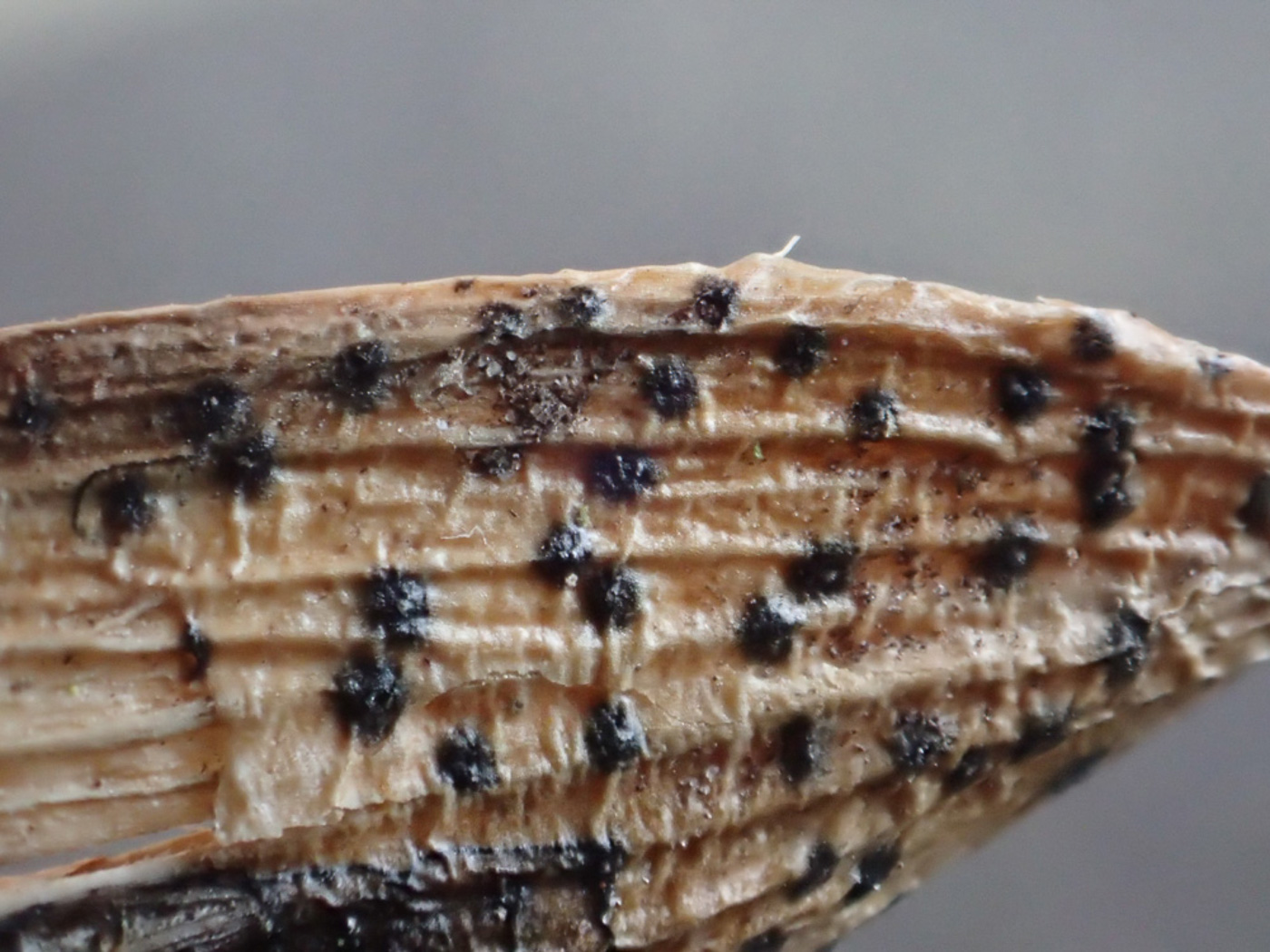 March 11th Arthrinium sporophleum (an unusual plant pathogen with no English name) At Northmoor Hill Reserve near Denham Jesper Launder, looking for tiny things on plant stems etc, noticed these unfamiliar black sooty blotches on the stems of Carex pendula (Pendulous Sedge). Both he and Sarah Ebdon worked on the ID, with the Ellis & Ellis section ''Fungi on Rushes, Sedges, Bur-reeds and Reedmaces' eventually providing the answer. The species apparently can also occur on many different grasses and is considered common (despite there being not that many FRDBI records). We have just one previous county record from Rushbeds Wood on the same host plant, found by Claudi Soler back in March 2016. New find |
