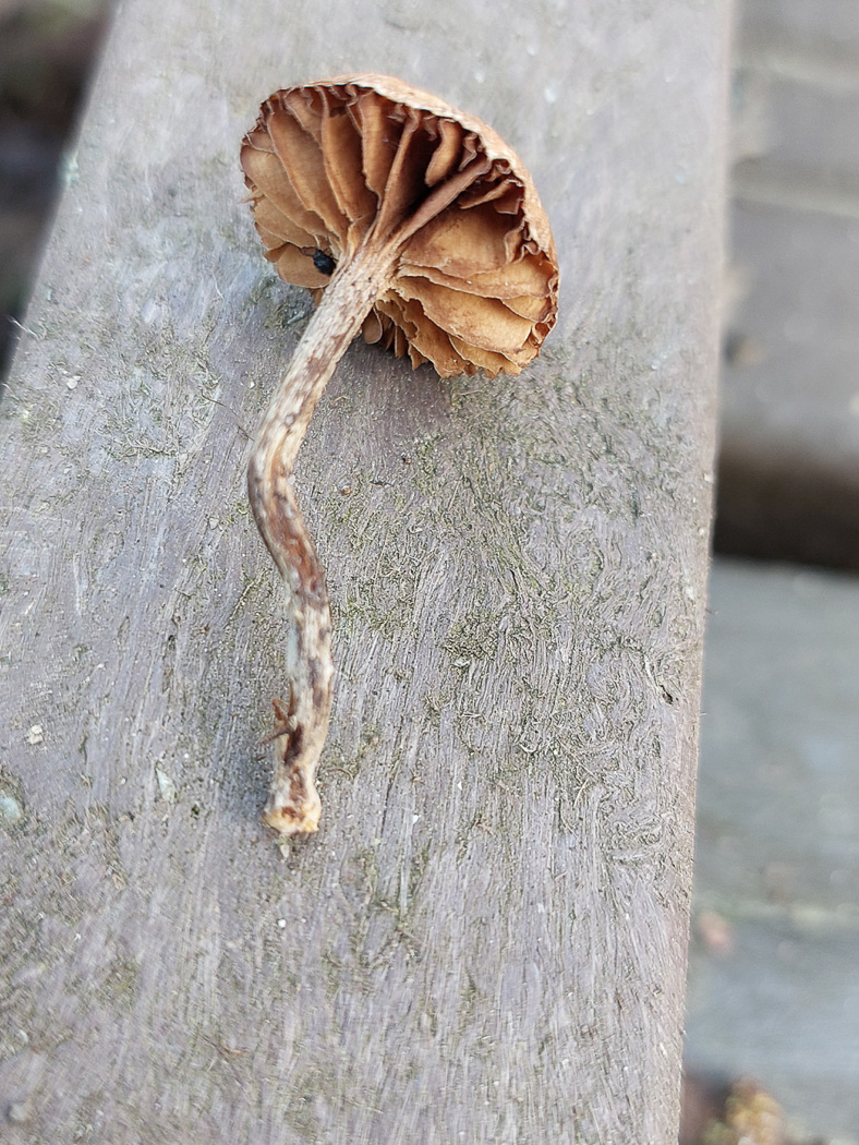 February 10th Psathyrella spadiceogrisea (Spring Brittlestem) In woody litter under Lime at Turville Heath Penny found a small singleton, and at home her thoughts that it was a Psathyrella, possibly spadiceogrisea considering the time of year, were confirmed. Our earliest record - we have plenty - is for early March (as it happens from this same site - Finds entry Mar. 3rd 2024), with the vast majority of records for April and May, but considering the recent mild and very damp extended spell it seems hardly surprising that it should be starting to fruit now. Previous finds |