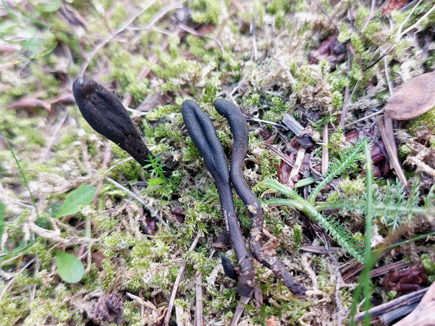 January 27th Dissingia leucomelaena (a rarely recorded Saddle with no English name) In Gerrards Cross Jesper Launder investigated a spot under Pine where he'd previously found this rare species several times in Spring, and there it was again. Previously in genus Helvella (though looking more akin to maybe Peziza) this is the earliest date he's found it here. See the notes on previous finds for more information about the species. Previous finds |