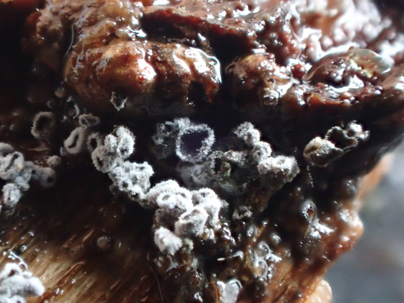 Marasmius hudsonii (Holly Parachute) Mycena tenerrima (Frosty Bonnet) Hohenbuehelia grisea (Grey Oyster) Myxarium nucleatum (Crystal Brain) Exidia thuretiana (White Brain) Click here |