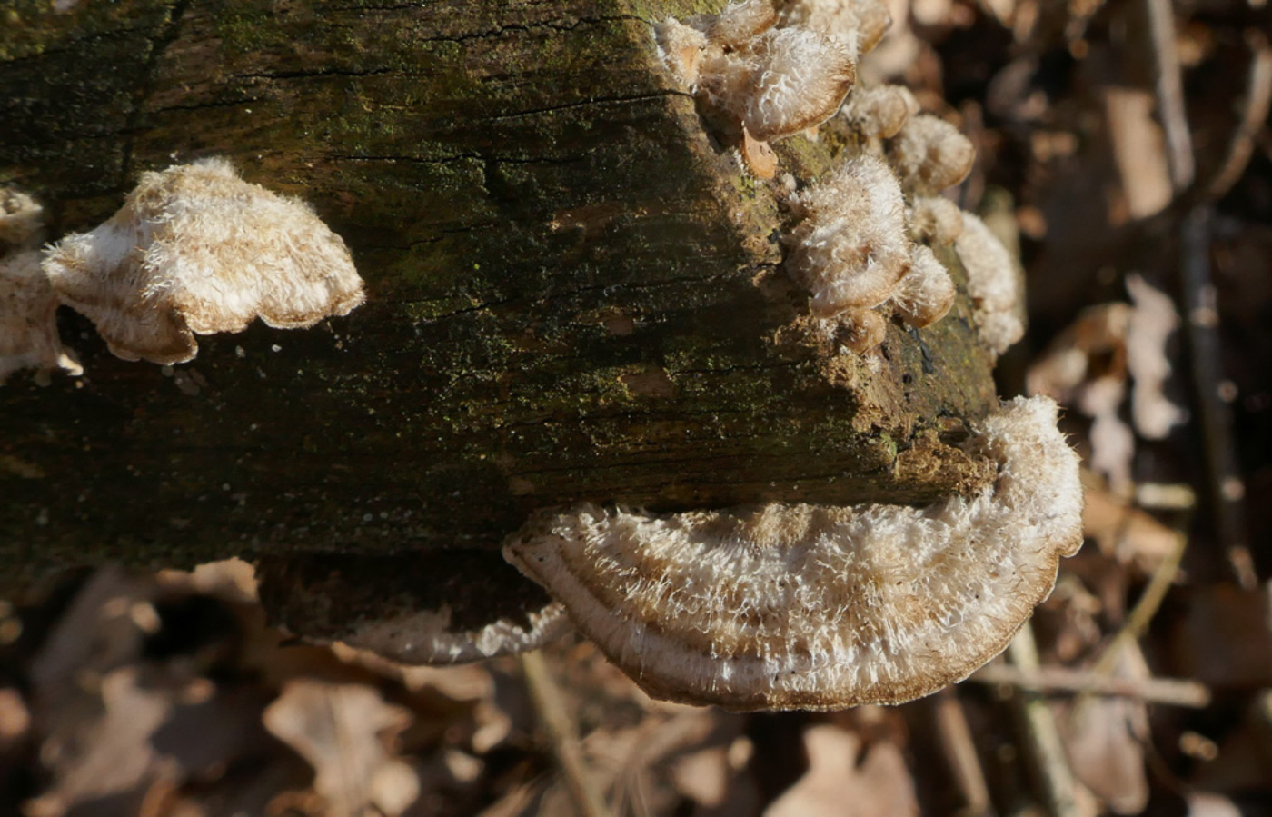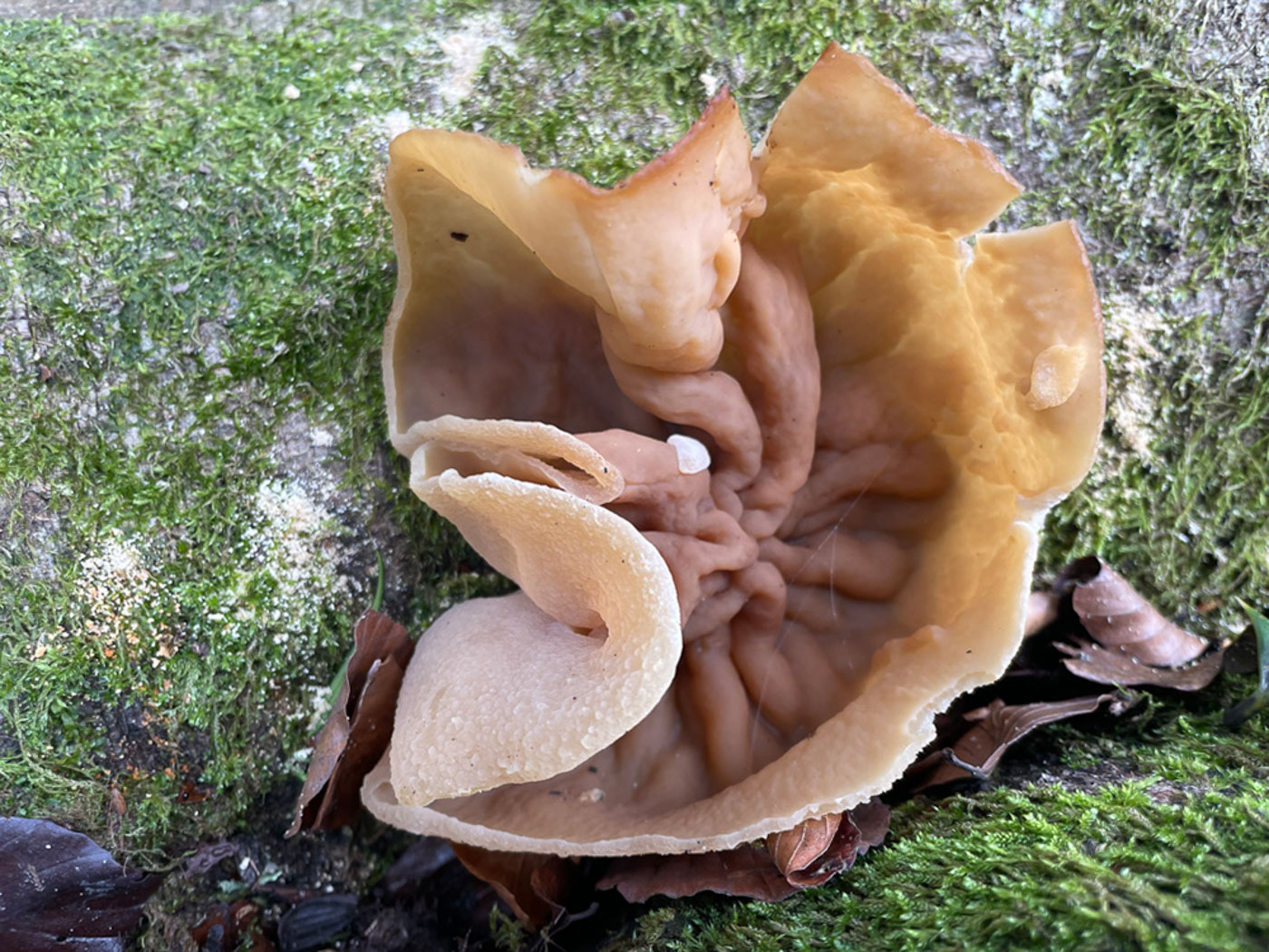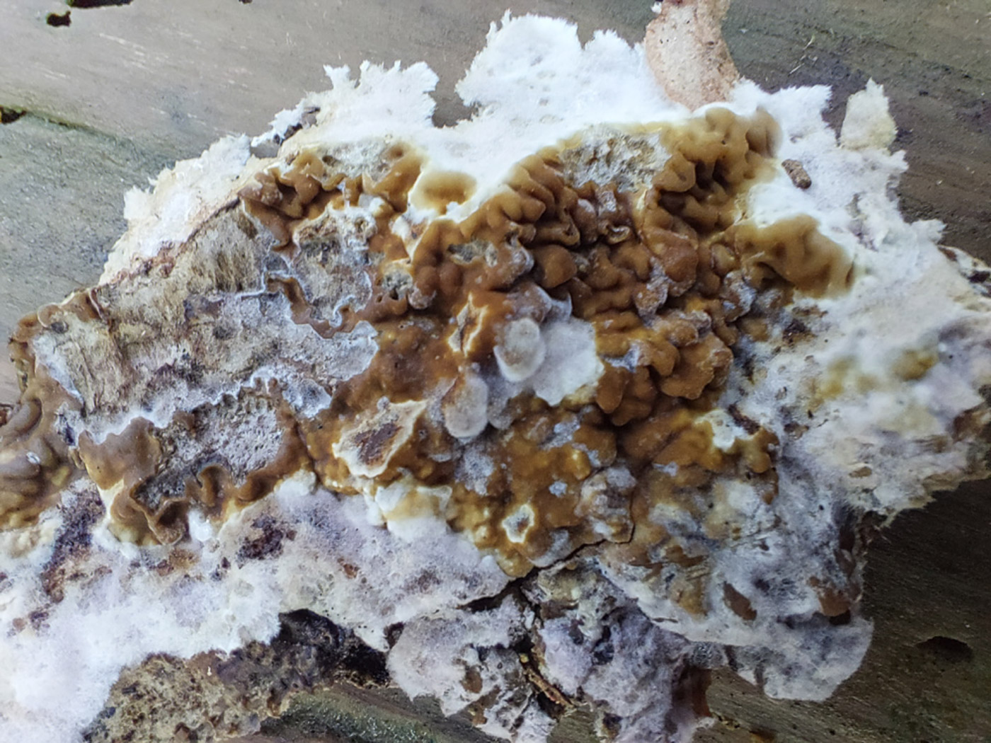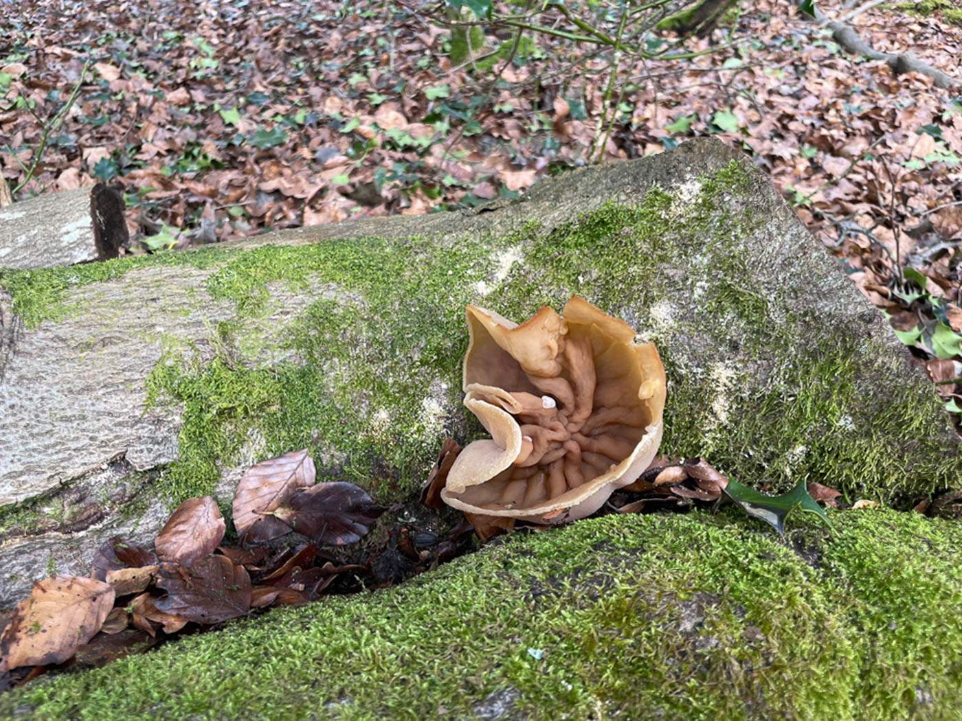 January 28th Phaeotremella frondosa (Leafy Brain) In Burnham Beeches Gill Ferguson came across this large frilly seaweed-like gelatinous fungus and sent her photo to Penny who recognised it as what we have previously named Tremella foliacea. Checking her facts with Sarah Ebdon, she recalled that recently not only has the genus name changed but as DNA revealed it as a species complex, it has now been split with the result that P. foliacea is now the name for fruit bodies found on fallen conifer and P. frondosa when found on fallen broadleaf wood, most commonly Beech. In fact it is apparently parasitic on the common Stereum hirsutum (Hairy Curtain Crust), often occurring on the wood once the host fungus fruit bodies have disappeared, and Gill commented that she'd noticed this host further along the branch today. So though this is a new record for the county under its present name, there can be little doubt that most if not all of our records for Tremella foliacea are in fact this species. Previous finds |