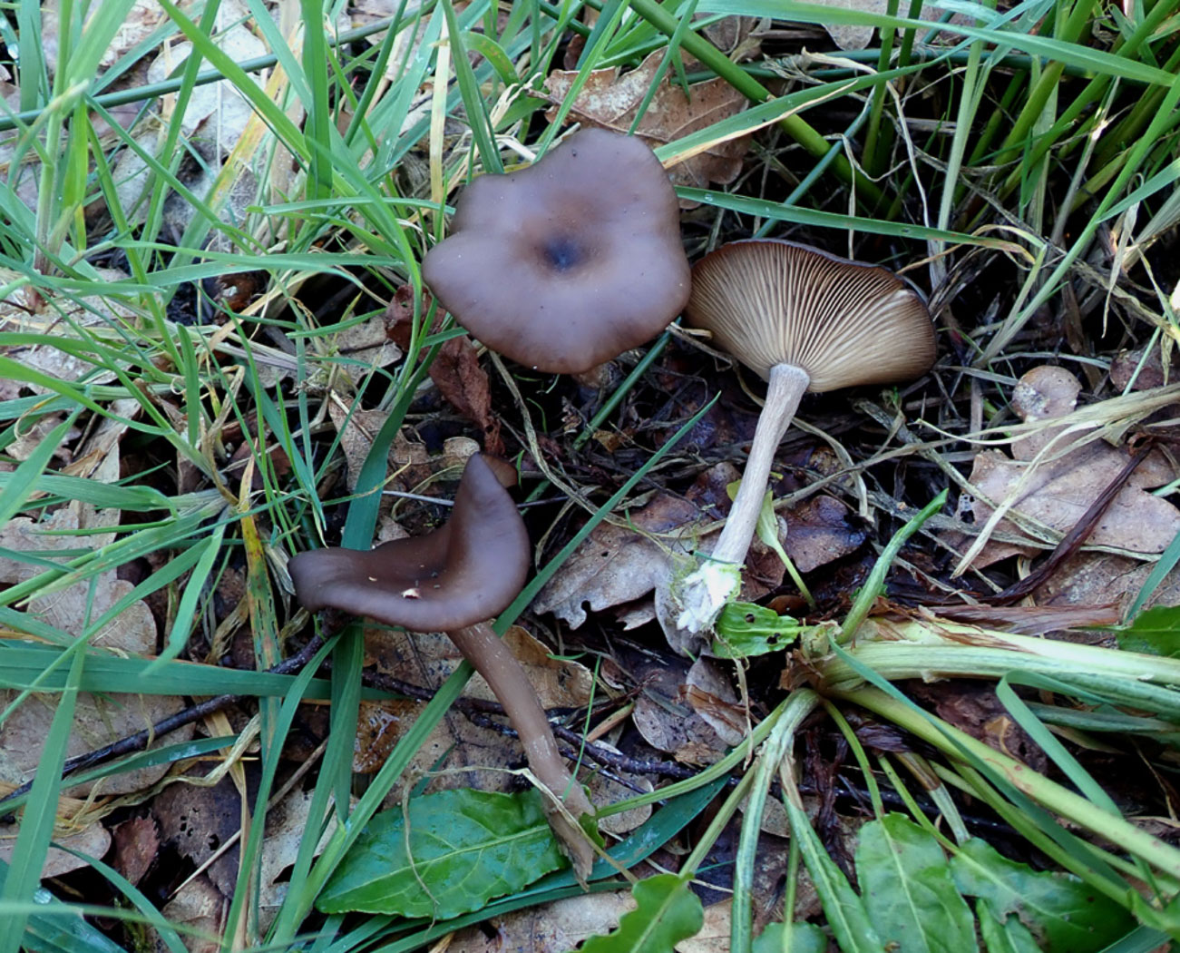 March 17th Pseudoclitocybe cyathiformis (Goblet) At Turville Heath Penny noticed this trio amongst damp grass with Juncus. This is a distinctive species with its apt English name describing the shape well; it favours late season fruiting and can quite often be found well into spring as here. Previous finds |