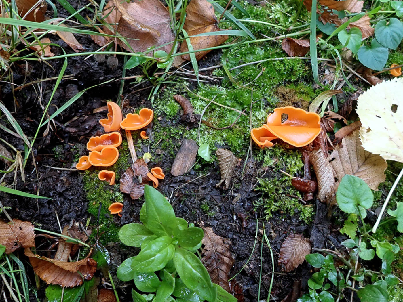 Sep 14, 2025. At Turville Heath Penny found this cluster of brightly coloured cups in a patch of disturbed soil one of the Limes in the avenue was replaced with a sapling last year.