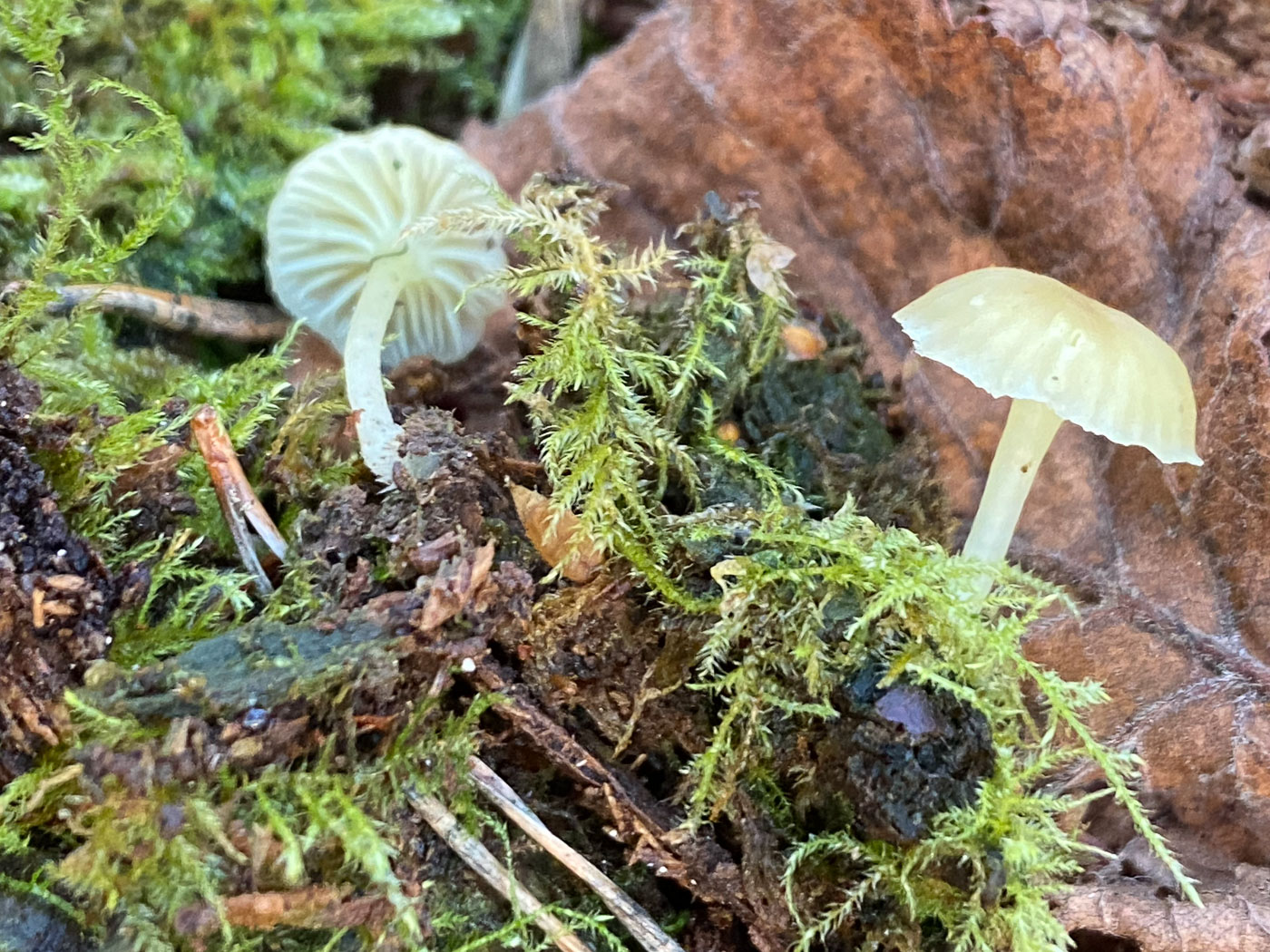 Nov 20, 2022. At Burnham Beeches our small group found several Oak stumps with good numbers of this small ascomycete - one that looks just like a small white Mycena (Bonnet) until you look underneath with a handlens and find no gills! It frequents damp rotting Oak stumps and is reasonably common. (The photo here is Stephen Plummer's.) |