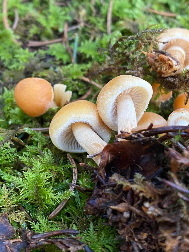 Sep 29, 2022. At Stampwell Farm in a woodland path under Oak and Birch Jackie Ewan found this group of mushrooms and recognised the genus from their sticky caps and general appearance, then tested for the typical radish smell present in many members of the genus. A few species, however, have a remarkable and distinctive smell of burnt sugar which was present here. She checked the microscopic characters later to confirm her ID made using her nose! The species is not rare though this is a first for Members' Finds.
