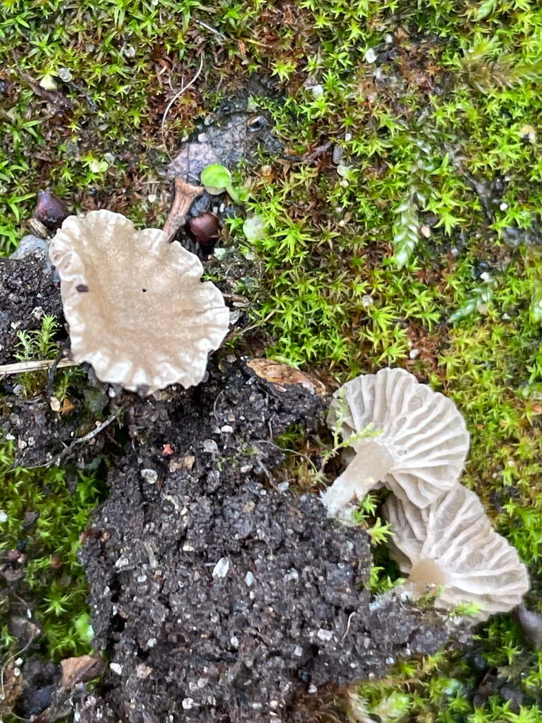 November 6th Arrhenia rickenii (Moss Navel) In Stoke Poges Memorial Gardens Sarah Ebdon spotted these tiny fungi, each less than 1 cm across, in some short moss at a path edge and took it home to confirm the species she already suspected she recognised. Sure enough it keyed out convincingly even to have a faint smell of Pelargonium! We have just three previous county records though there are a good number on FRDBI. No doubt this is a species you need to know to look for with care in moss. Previous finds |