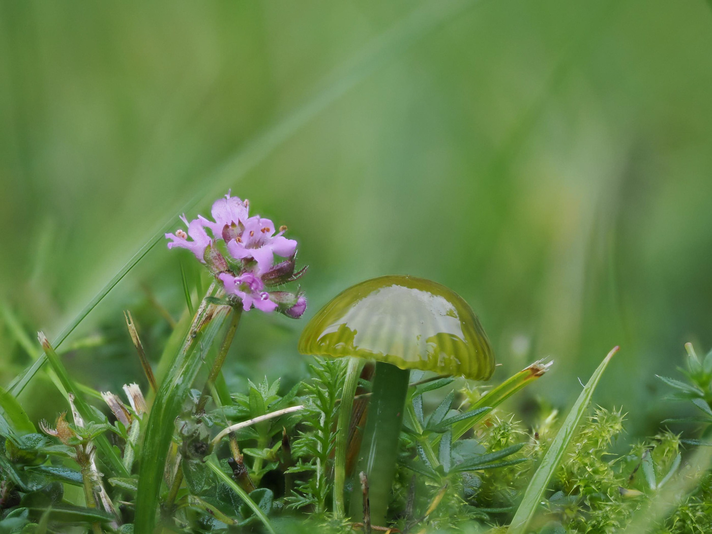 November 6th Gliophorus psittacinus (Parrot Waxcap) In St Giles Churchyard, adjacent to Stoke Poges Memorial Gardens, waxcaps were few and far between but we did manage to uncover a few of these luscious delights which were well camouphlaged amongst the short foliage, this one found in a patch of Thyme which caught Claire Williams's fancy. Previous finds |