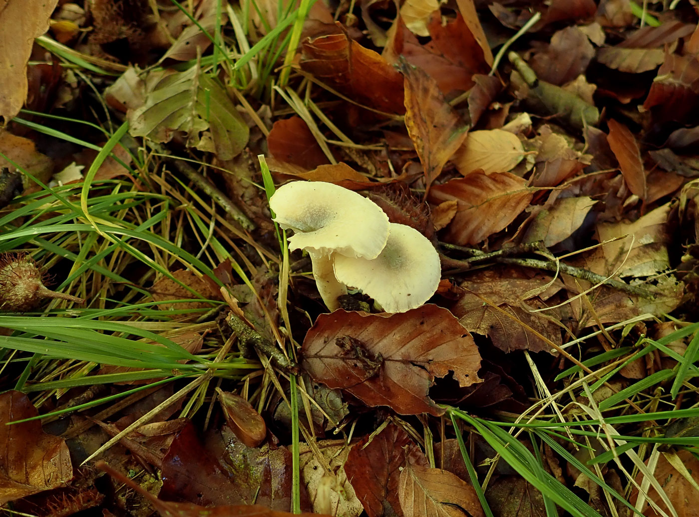 November 6th Cuphophyllus virgineus (Snowy Waxcap) At Stoke Poges Memorial Gardens Claire Williams took this photo of one of the very few waxcaps we found at this site - one of our best for these special mushrooms, but not today! This example was large, standing about 7 cms tall and making us question whether it might be a pale form of C. pratensis (Meadow Waxcap), but the moist smooth surface belied this as did the general 'jizz'. Previous finds |