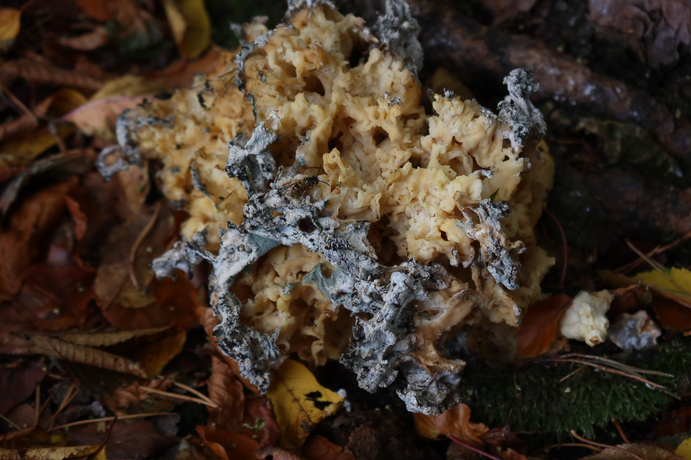 October 26th Sparassis crispa (Wood Cauliflower) In Downley Wood Claire Williams came across this voluminous fungus growing at the foot of a Pine trunk. Unfortunately it was not in the best state but as we have no entries of this species since 2022 (also Claire's from this site!) it was felt worthy of inclusion. Previous finds |